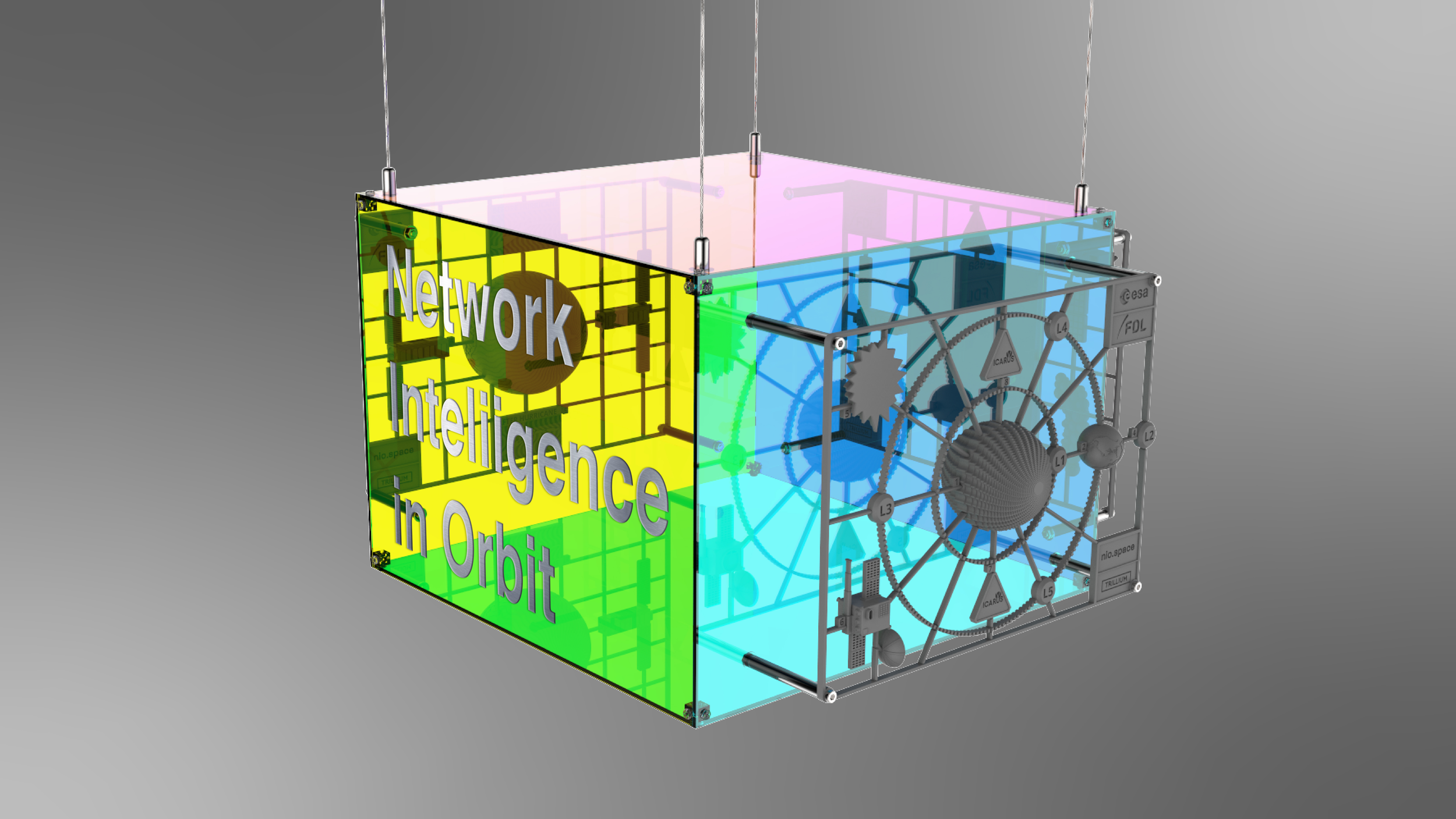 Suspended like a scientific relic from the near future, this luminous, cube-like installation blends art, engineering, and storytelling to bring to life the first steps of humanity’s next great engineering frontier: intelligence at the edge of space.